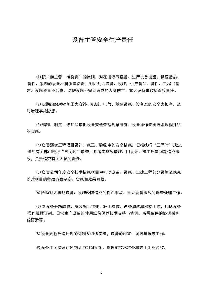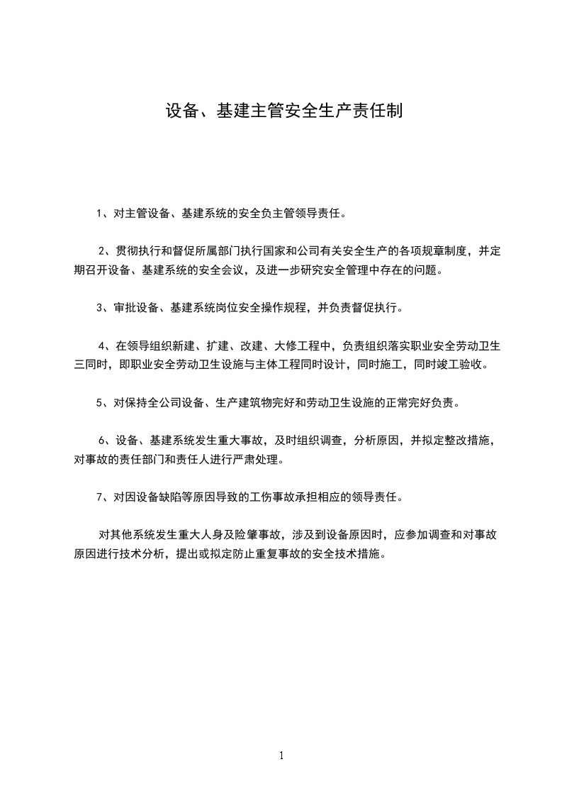 1、对主管设备、基建系统的安全负主管领导责任。