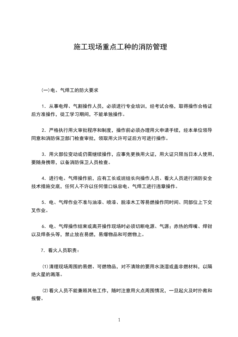 (一)电、气焊工的防火要求