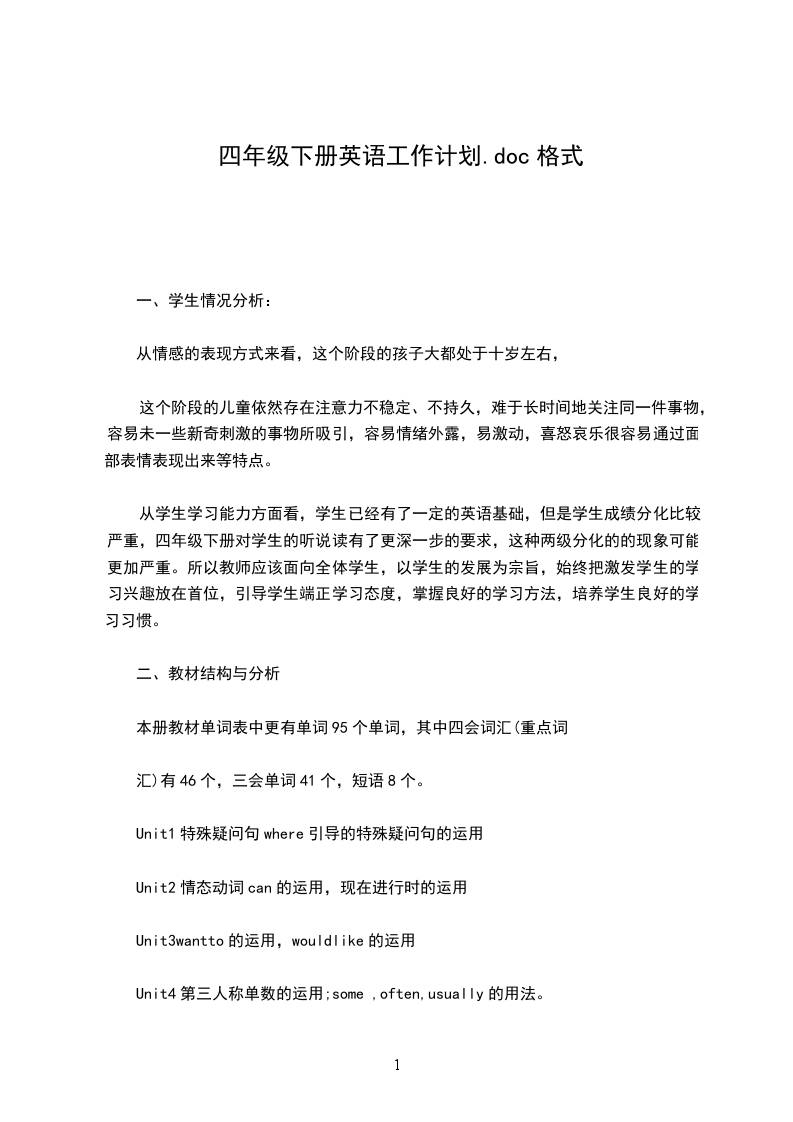 本学期教学为十八个周,四年级英语每周二节,共计三十六节/班,具体安排如下;