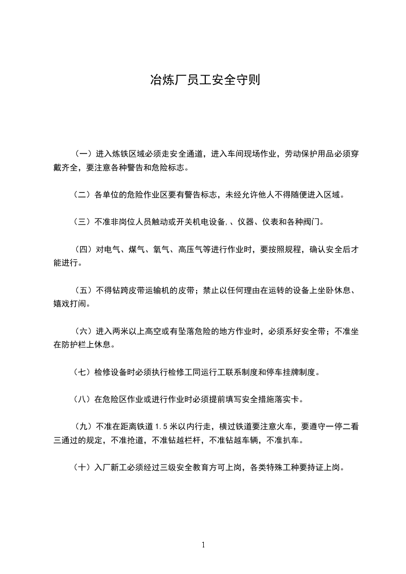 (十)入厂新工必须经过三级安全教育方可上岗,各类特殊工种要持证上岗。