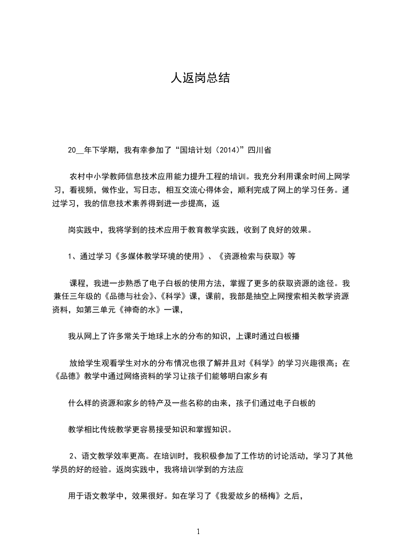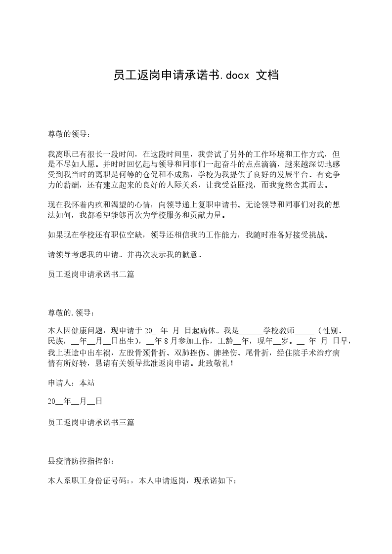 感谢单位为我提供锻炼自我的平台,我热爱我的工作,热爱单位。在此我提出返岗申请,敬请领导酌情予以批准为盼!