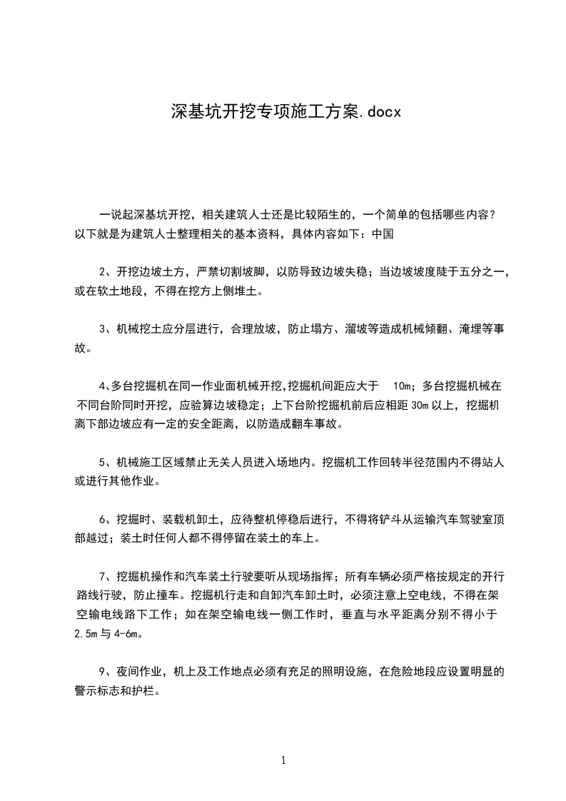 1.6在有支撑的沟坑中使用机械挖土时,必须注意不得使机械破坏支撑。