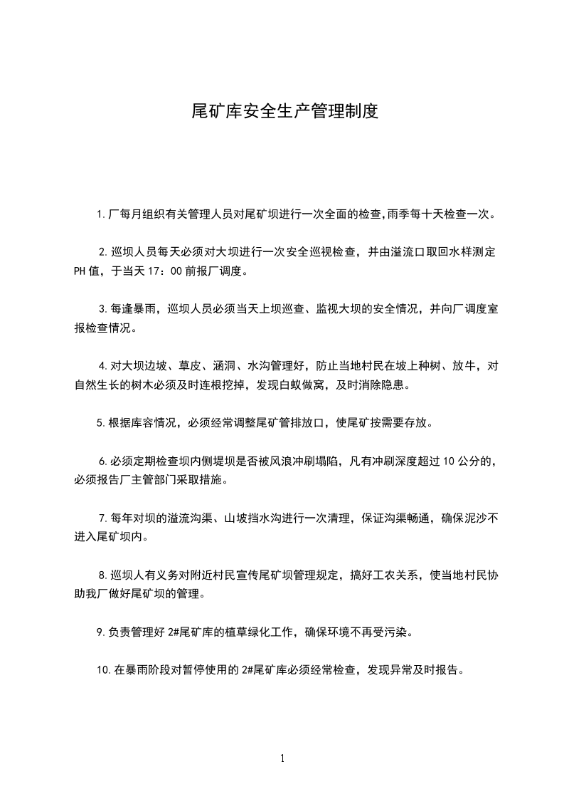 10.在暴雨阶段对暂停使用的2#尾矿库必须经常检查,发现异常及时报告。