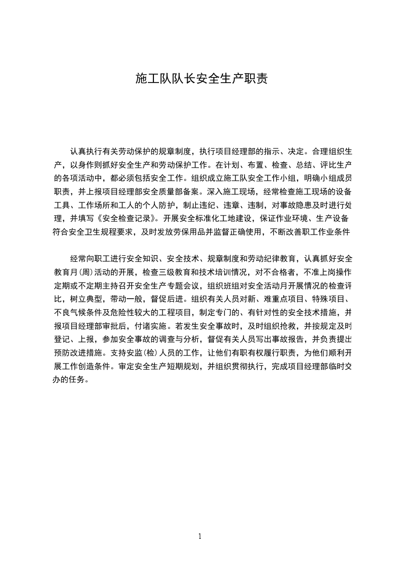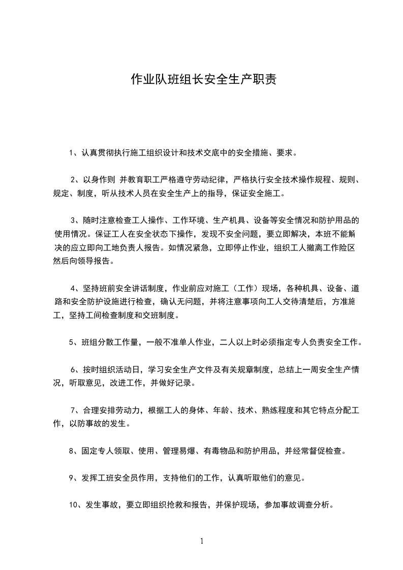 (1)负责施工队(班组)日常安全管理工作,对施工队(班组)人员在施工过程中的安全与健康负直接管理责任。