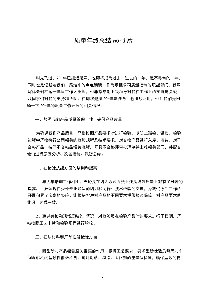 时光飞逝,20-年已接近尾声,也即将成为过去。过去的一年,是不寻常的一年,同时也是记载着我们一路走来的点点滴滴。作为承担公司质量控制的职能部门,我深深体会到在这一年里工作之重担,也非常感谢上级领导对我在工作上的支持与关爱,及同事们对我的支持和协助。在即将迎接20-年新任务、新挑战之时,也让我们先回顾一下20-年的质量工作开展的相关情况: