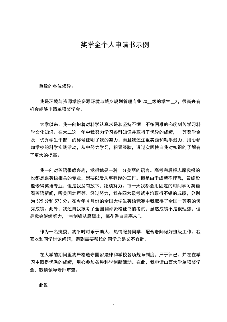 我是__学院__级的同学,现提出申请国家励志奖学金。