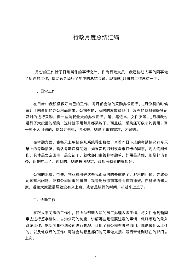 __年行政人事部工作大体上可分为以下三个方面: