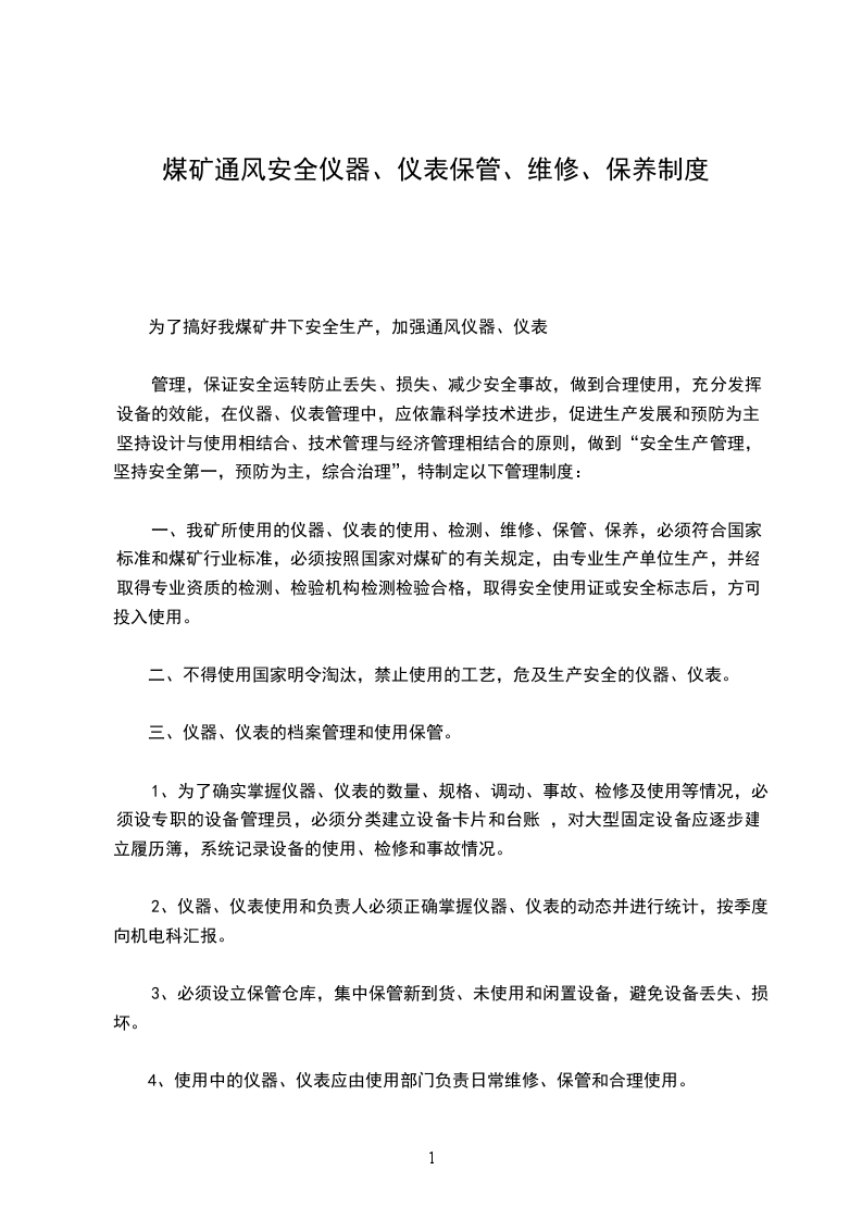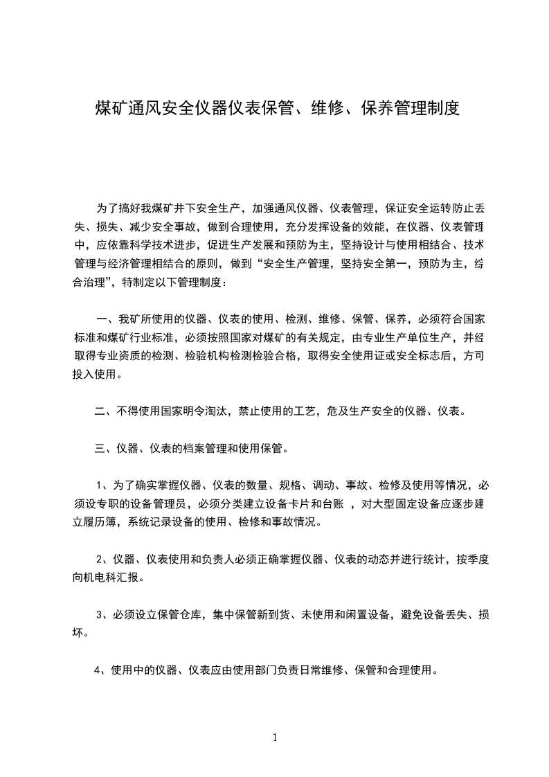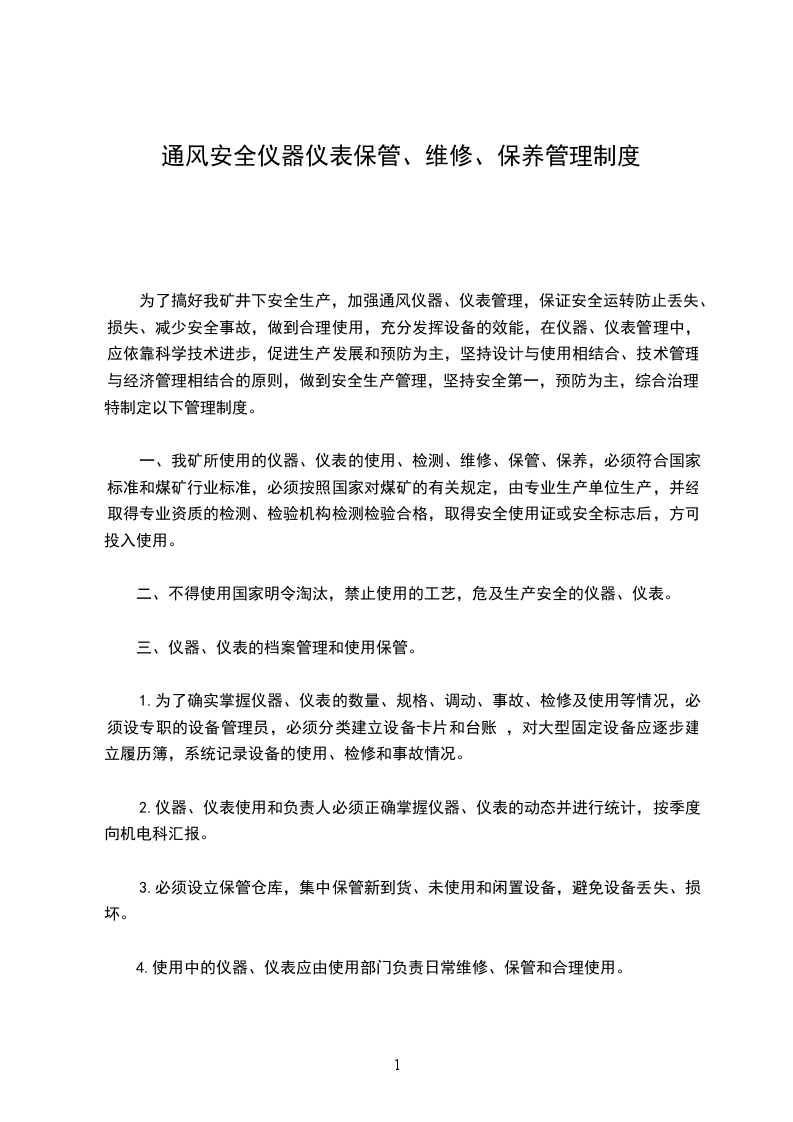 一、我矿所使用的仪器、仪表的使用、检测、维修、保管、保养,必须符合国家标准和煤矿行业标准,必须按照国家对煤矿的有关规定,由专业生产单位生产,并经取得专业资质的检测、检验机构检测检验合格,取得安全使用证或安全标志后,方可投入使用。