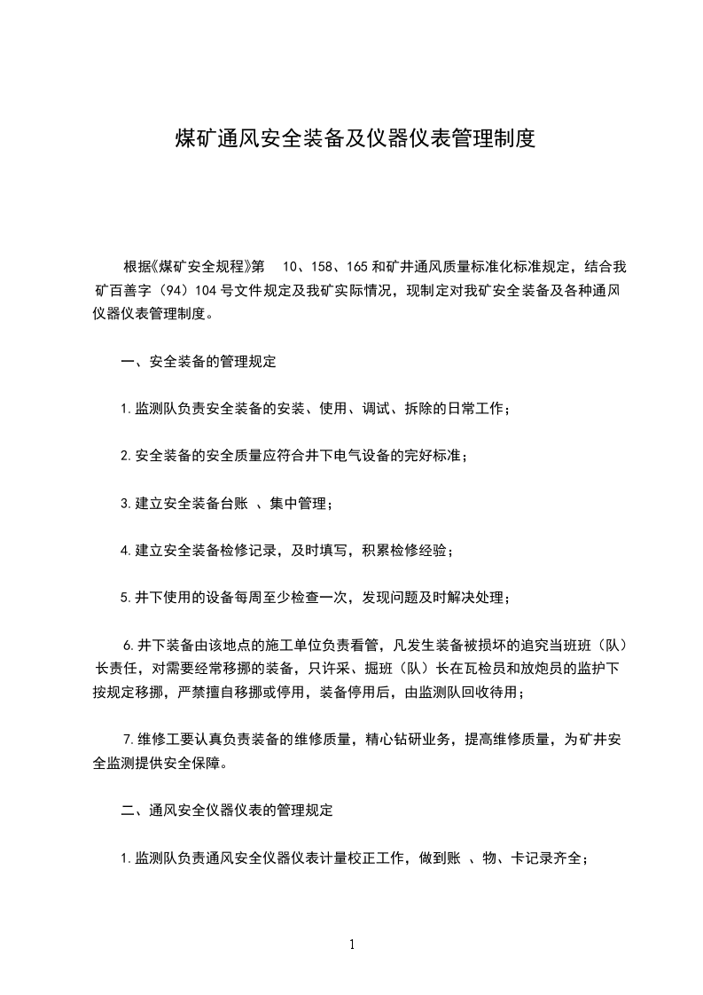 为了搞好我煤矿井下安全生产,加强通风仪器、仪表