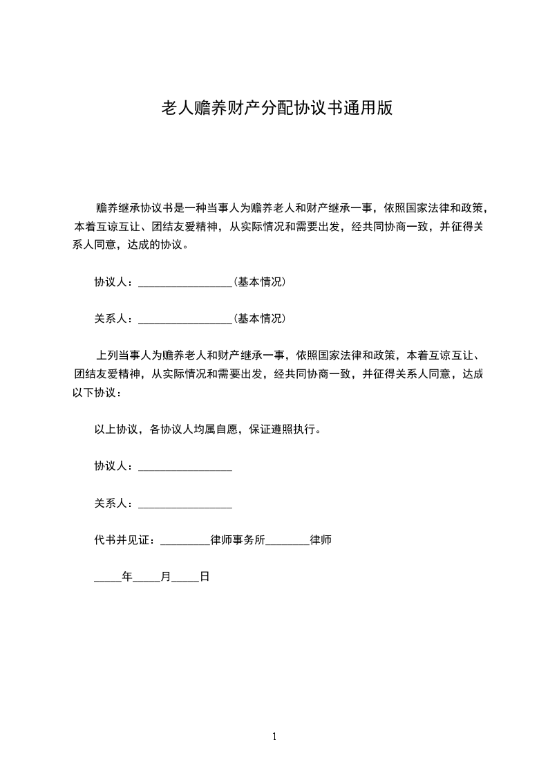 上列当事人为赡养老人和财产继承一事,依照国家法律和政策,本着互谅互让、团结友爱精神,从实际情况和需要出发,经共同协商一致,并征得众关系人同意,达成协议如下: