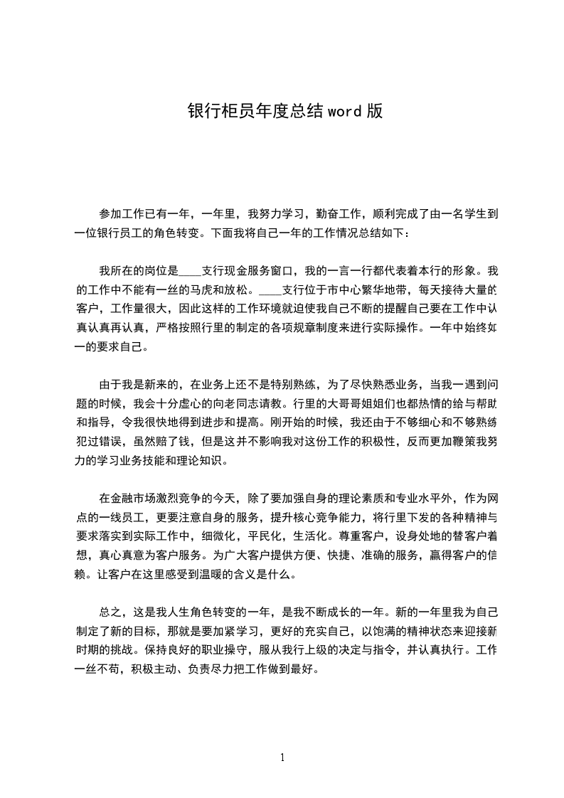 参加工作已有一年,一年里,我努力学习,勤奋工作,顺利完成了由一名学生到一位银行员工的角色转变。下面我将自己一年的工作情况总结如下: