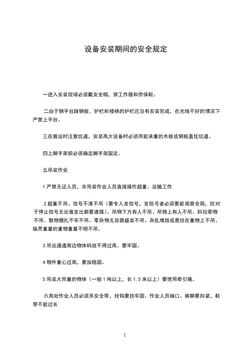 一进入安装现场必须戴安全帽,穿工作服和劳保鞋。