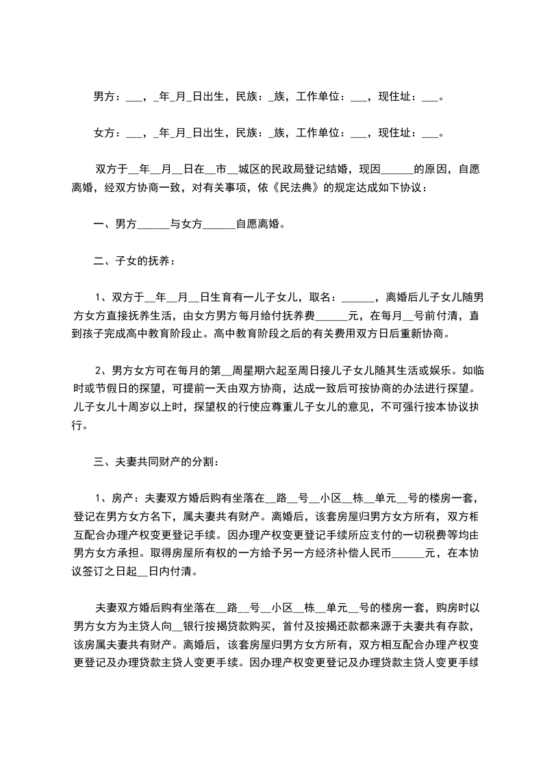 协议人:甲方,____________(男方)出生______年______月______日 身份证号码 ____________家庭住址 ____________联系电话____________