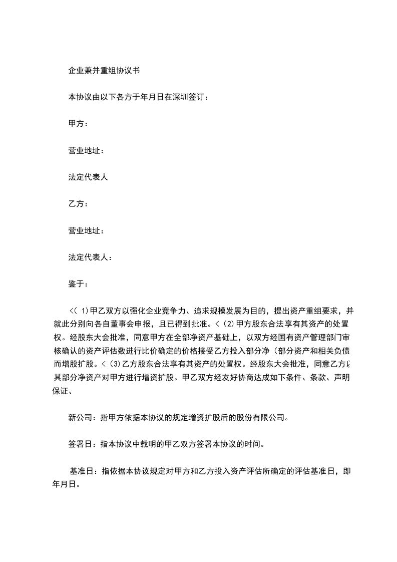 四、本意向协议书经双方协商达成,签字盖章后生效。具体事项经充分协商、修改、补充后,签订正式兼并重组协议书。