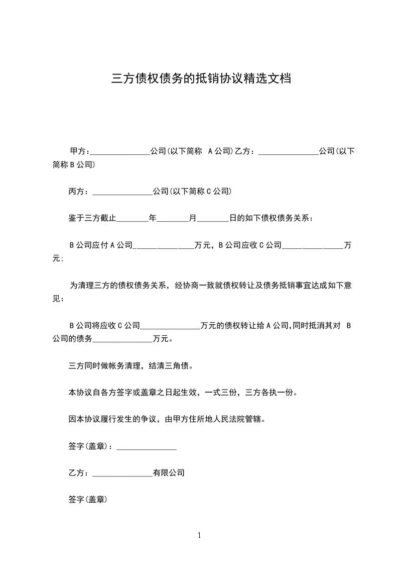为清理三方的债权债务关系,经协商一致就债权转让及债务抵销事宜达成如下意见: