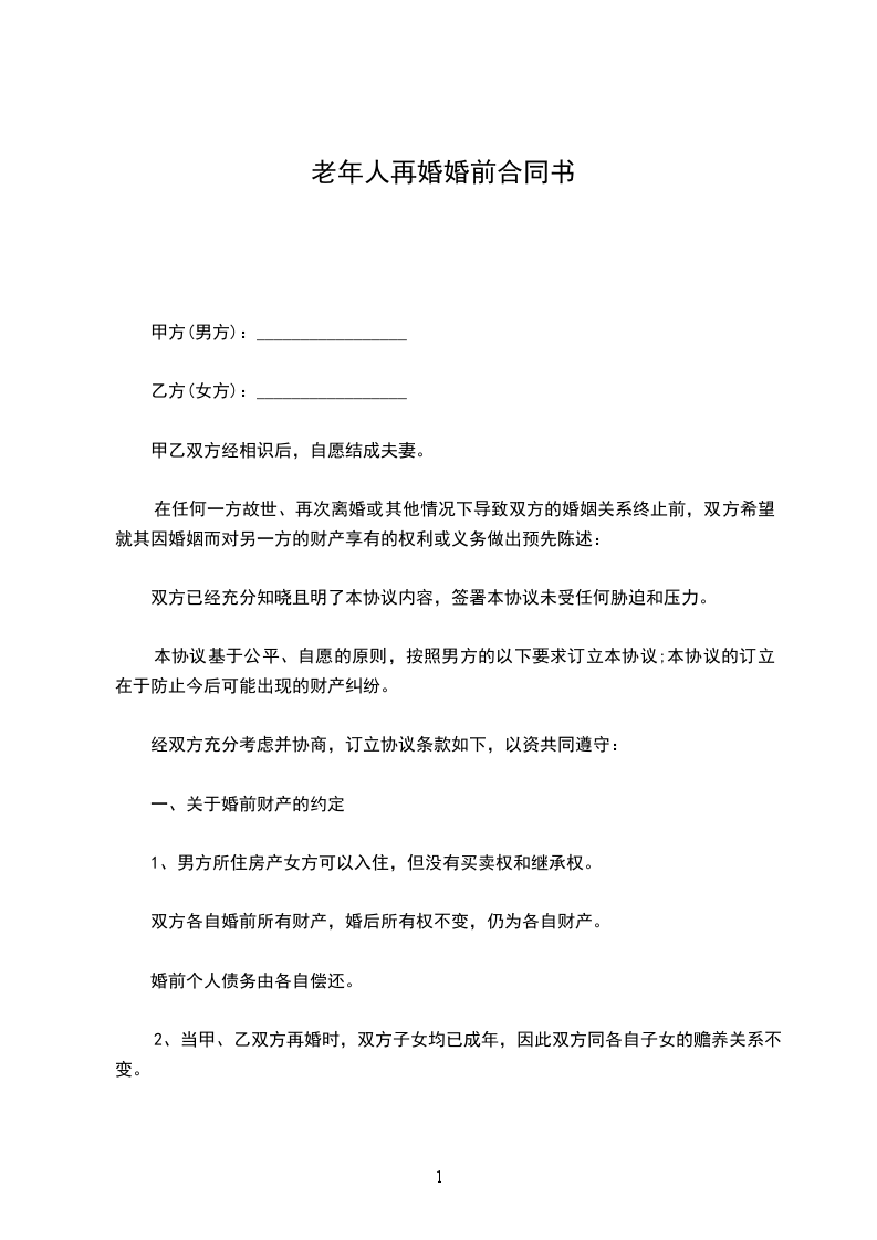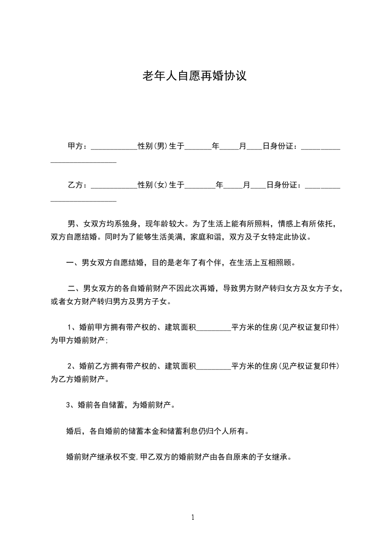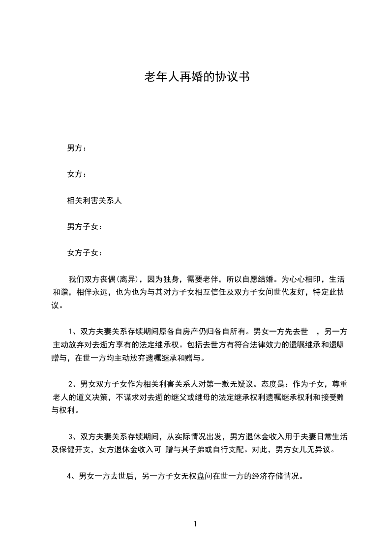 我们双方丧偶(离异),因为独身,需要老伴,所以自愿结婚。为心心相印,生活和谐,相伴永远,也为也为与其对方子女相互信任及双方子女间世代友好,特定此协议。