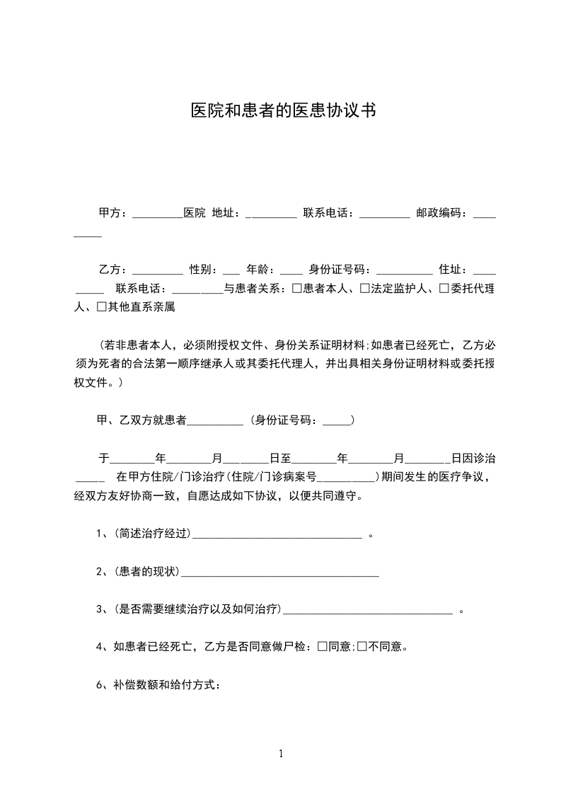 9、本协议一式_____份,甲乙双方各执一份,_____,附件一份,为乙方与患者的身份关系证明材料或授权文件。
