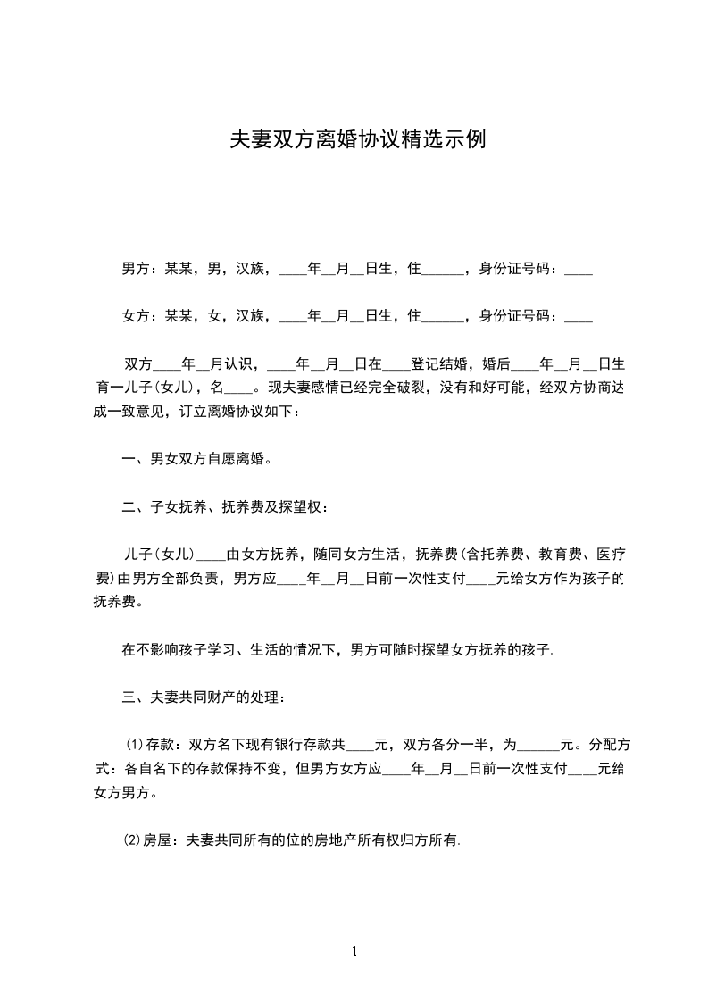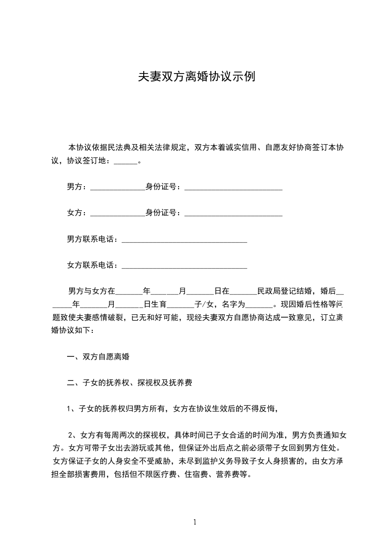 六、本协议书一式三份,男女双方各执一份,婚姻登记机关存档一份。
