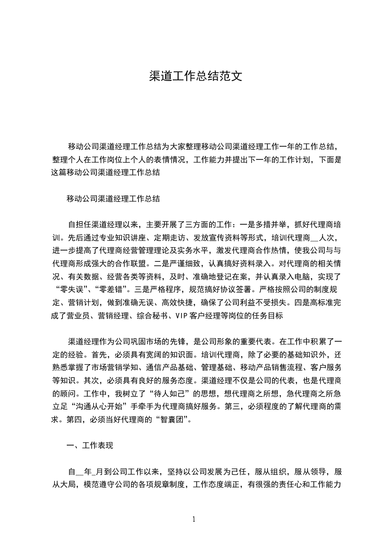 移动公司渠道经理工作总结为大家整理移动公司渠道经理工作一年的工作总结,整理个人在工作岗位上个人的表情情况,工作能力并提出下一年的工作计划,下面是这篇移动公司渠道经理工作总结