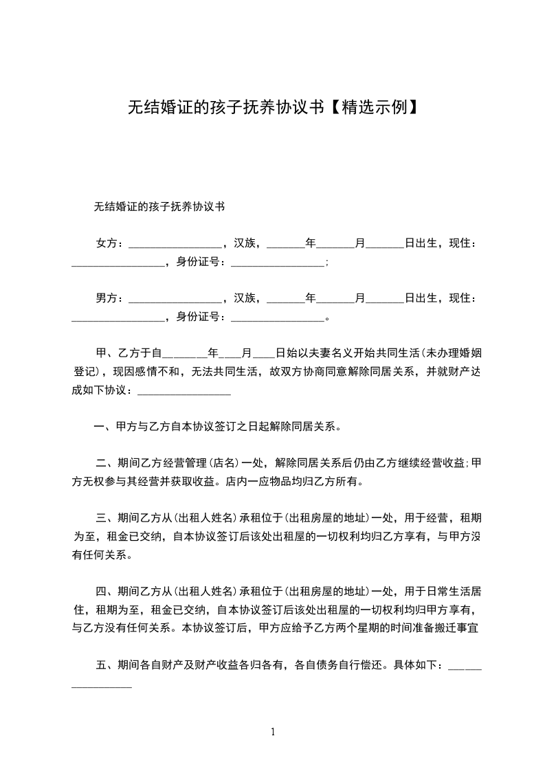 女方:_________________,汉族,_______年_______月_______日出生,现住:_________________,身份证号:_________________;
