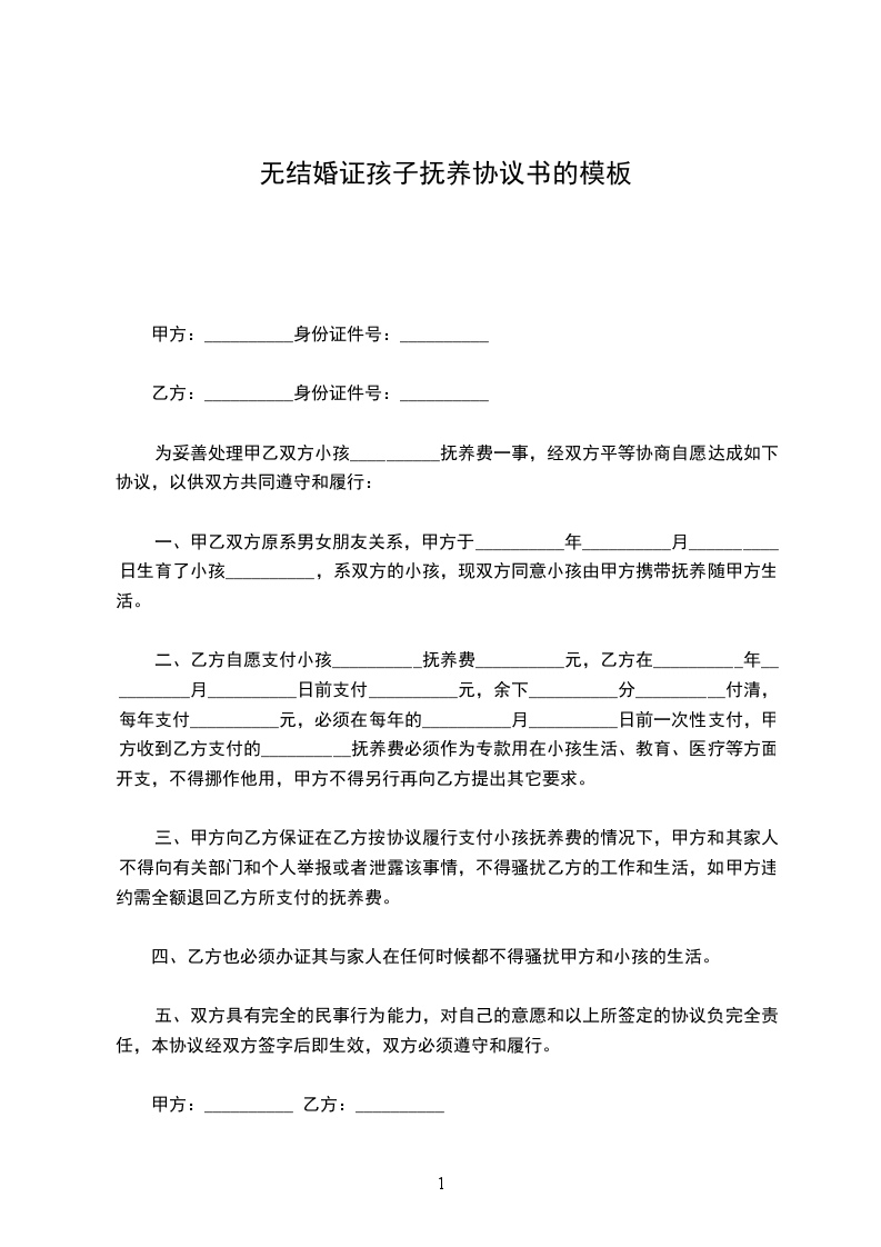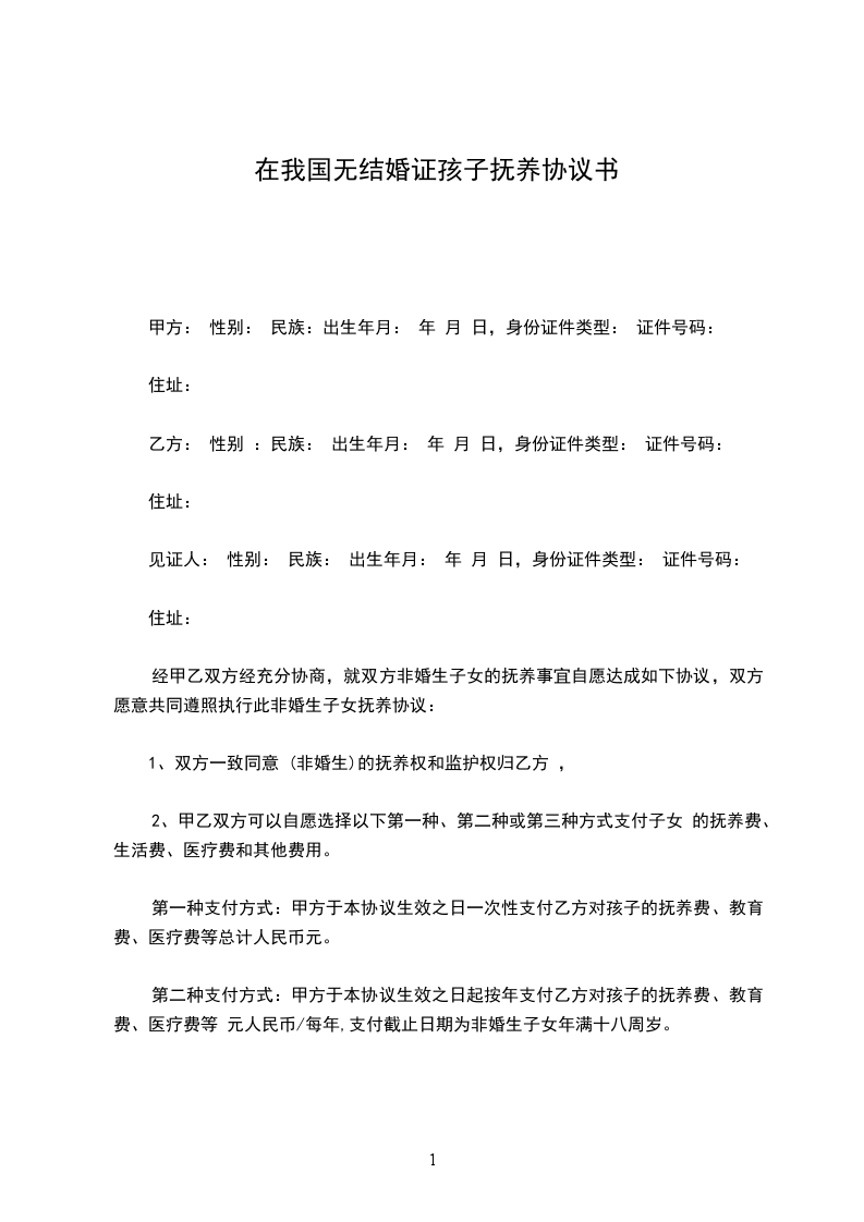 本非婚生子女抚养协议一式二份,甲乙方各自留存一份。