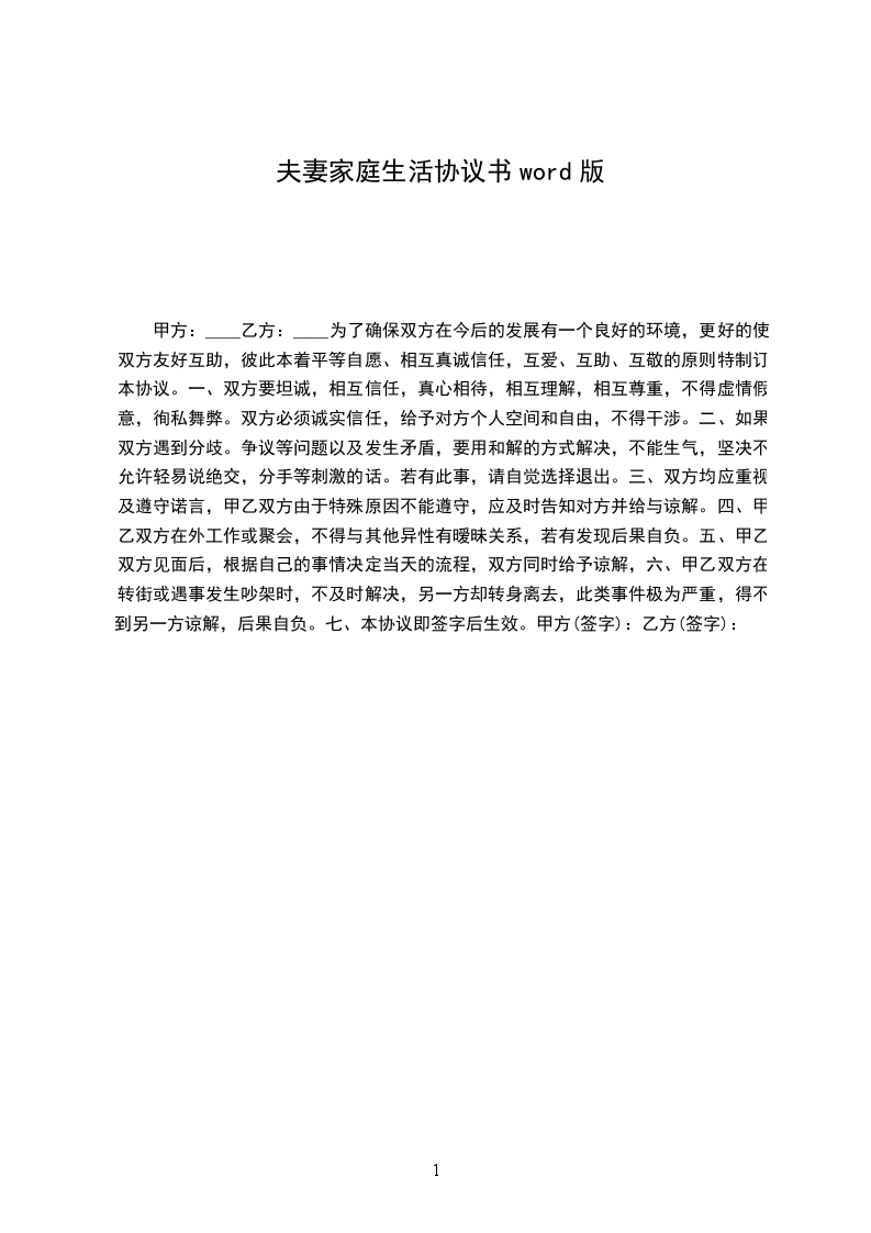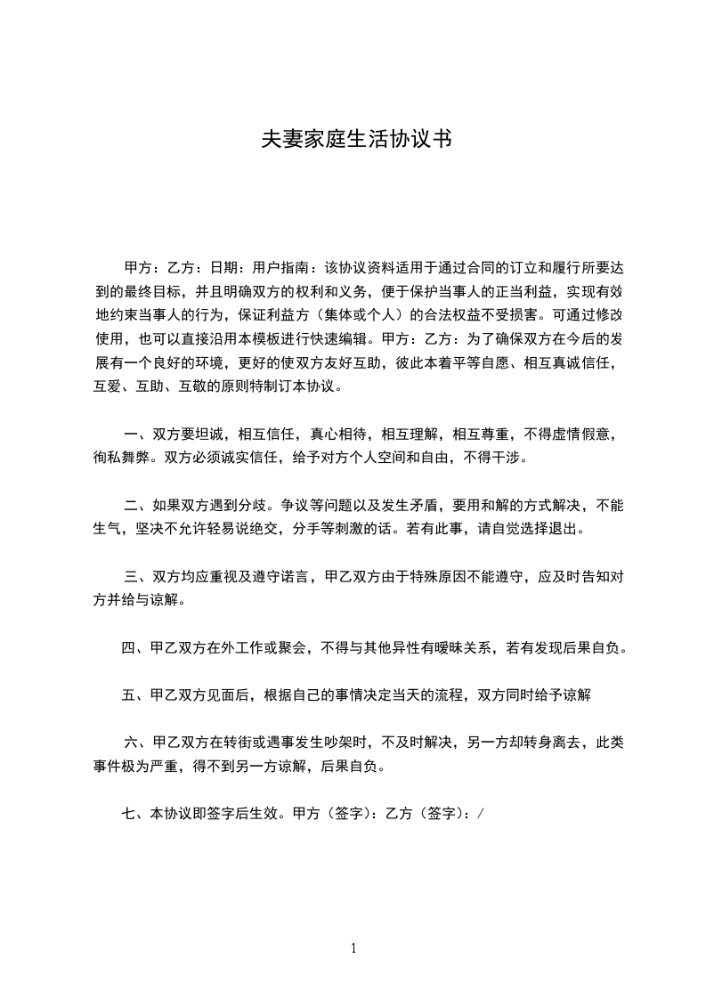 第一条甲乙双方应当互相忠实,互相尊重,在家庭生活中互相帮助,共同维护平等、和睦、文明的家庭关系。