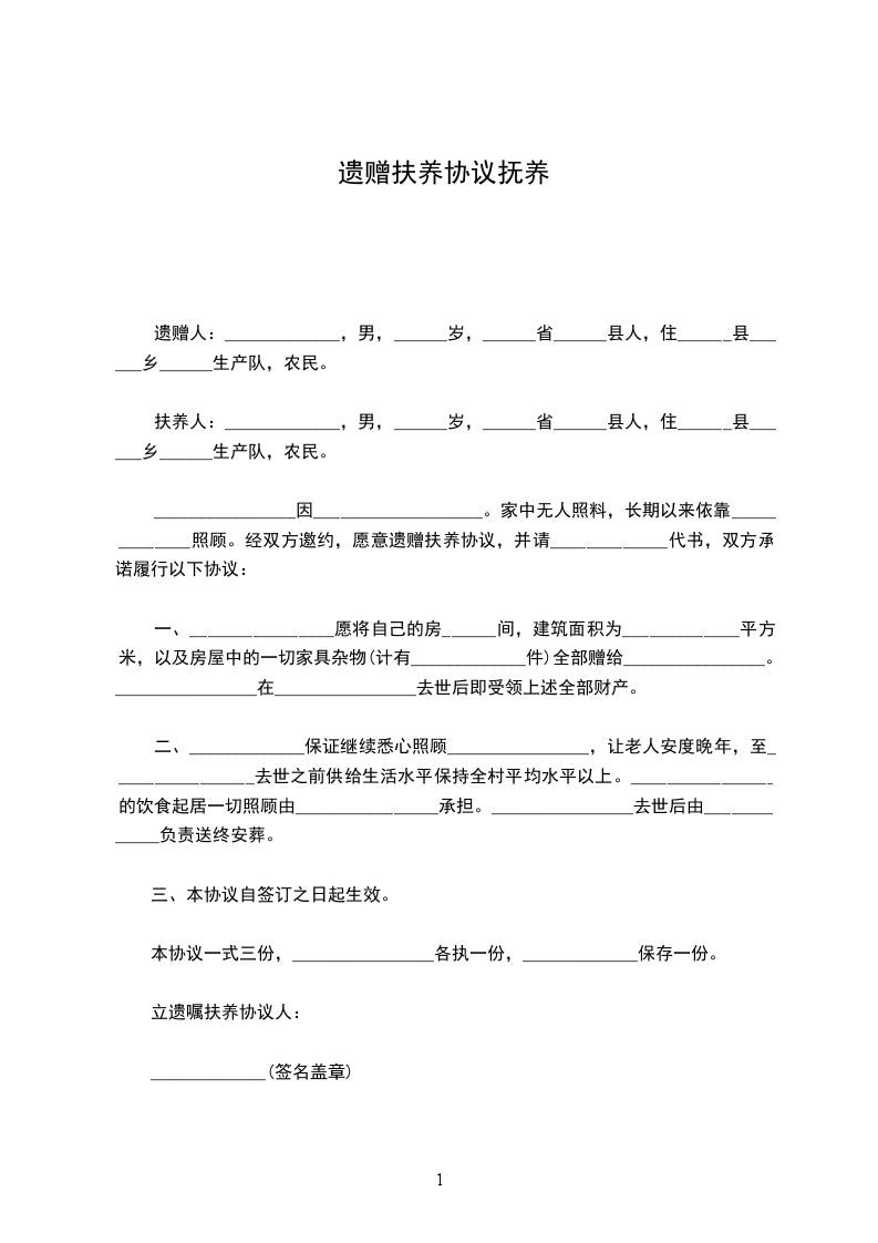 遗赠人:_____________,男,______岁,______省______县人,住______县______乡______生产队,农民。