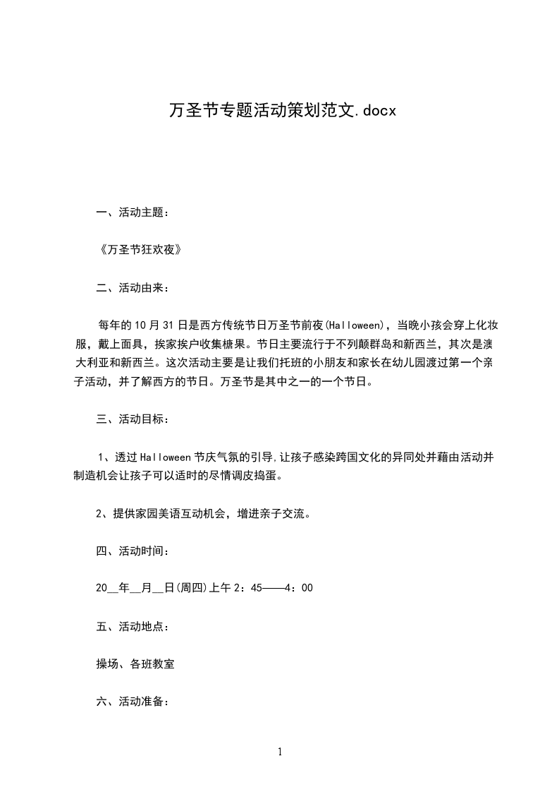 每年的10月31日是西方传统节日万圣节前夜(Halloween),当晚小孩会穿上化妆服,戴上面具,挨家挨户收集榶果。节日主要流行于不列颠群岛和新西兰,其次是澳大利亚和新西兰。这次活动主要是让我们托班的小朋友和家长在幼儿园渡过第一个亲子活动,并了解西方的节日。万圣节是其中之一的一个节日。