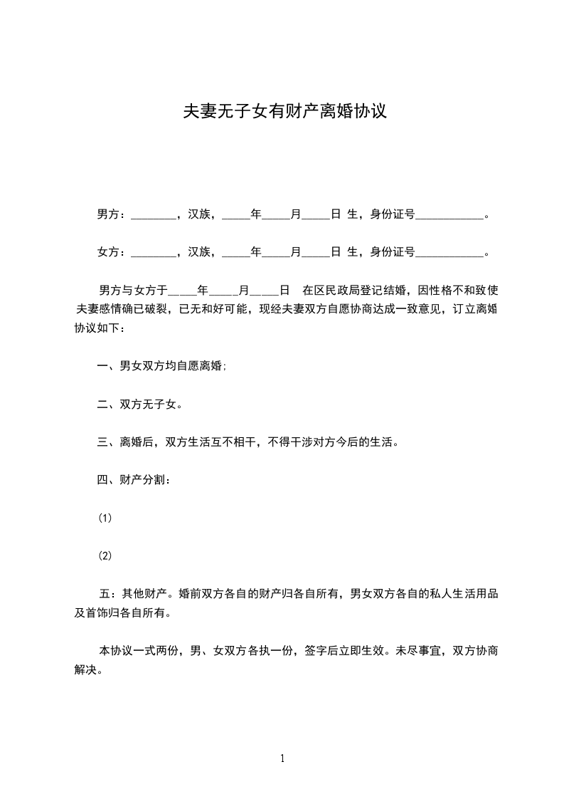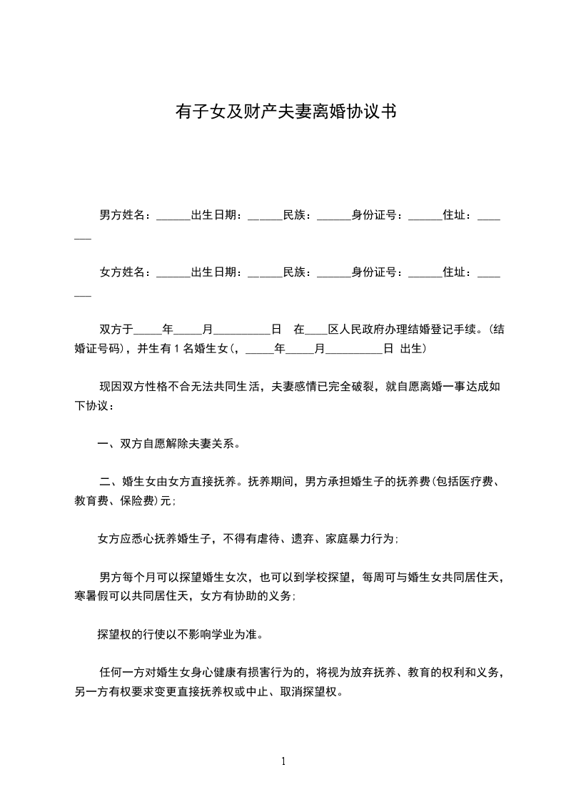 1、男方与女方自愿离婚。