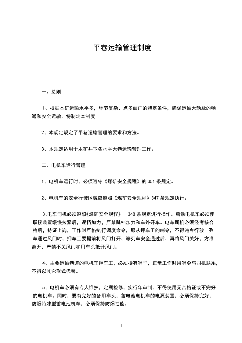 2、本规定规定了平巷运输管理的要求和方法。