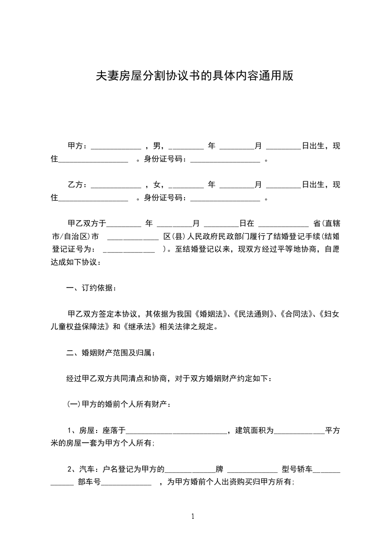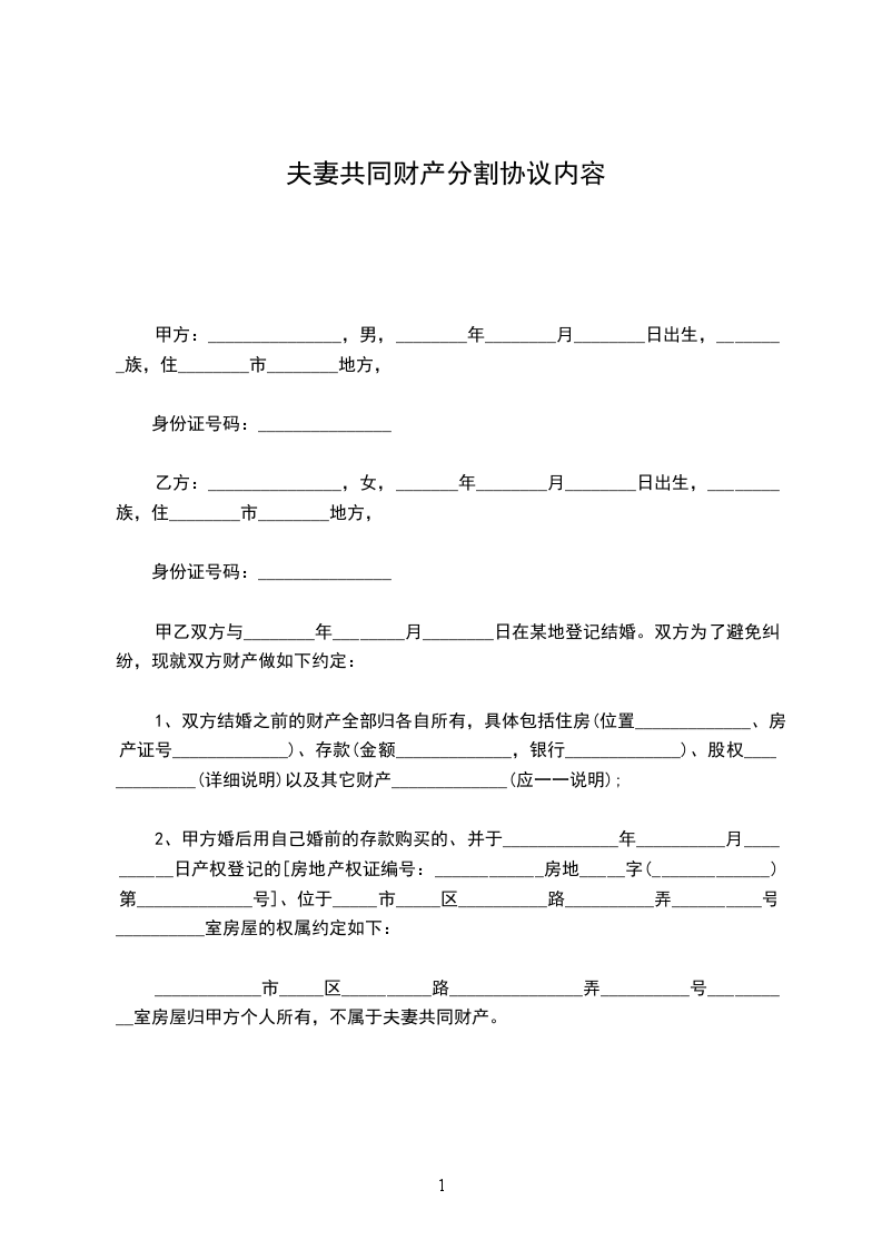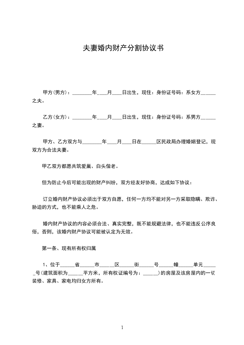 ____________市_____区__________路_______________弄__________号__________室房屋归甲方个人所有,不属于夫妻共同财产。