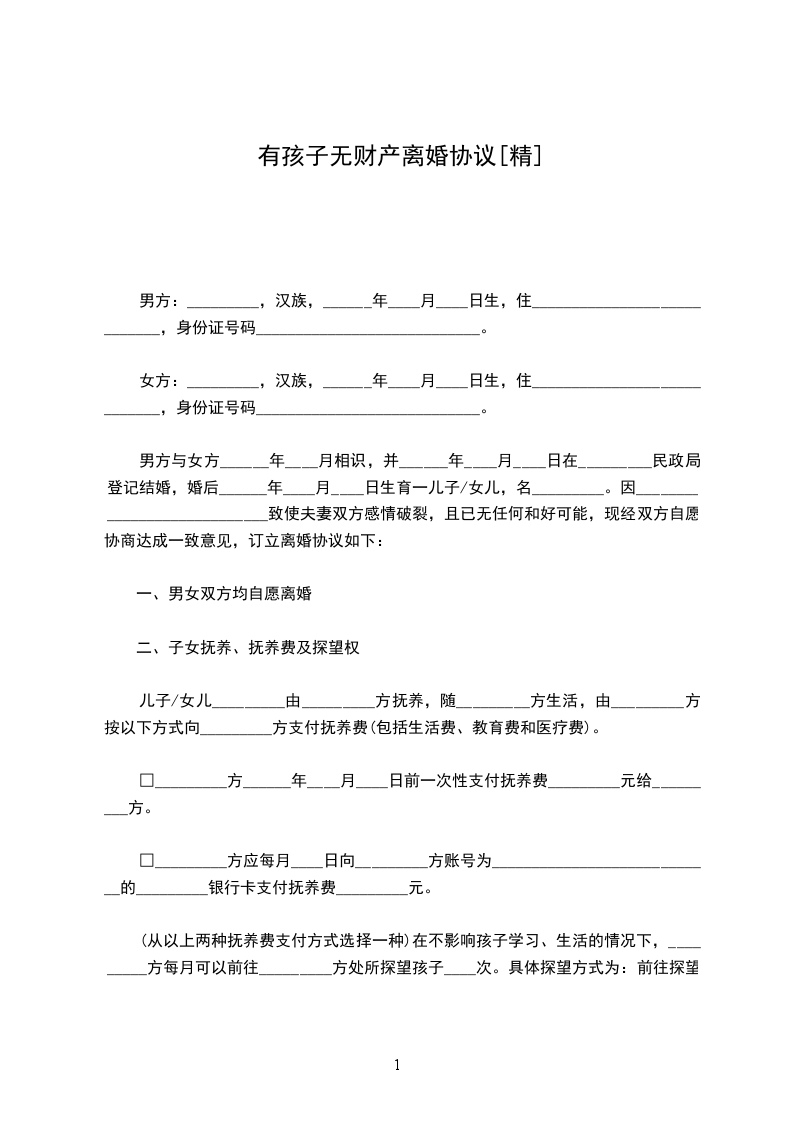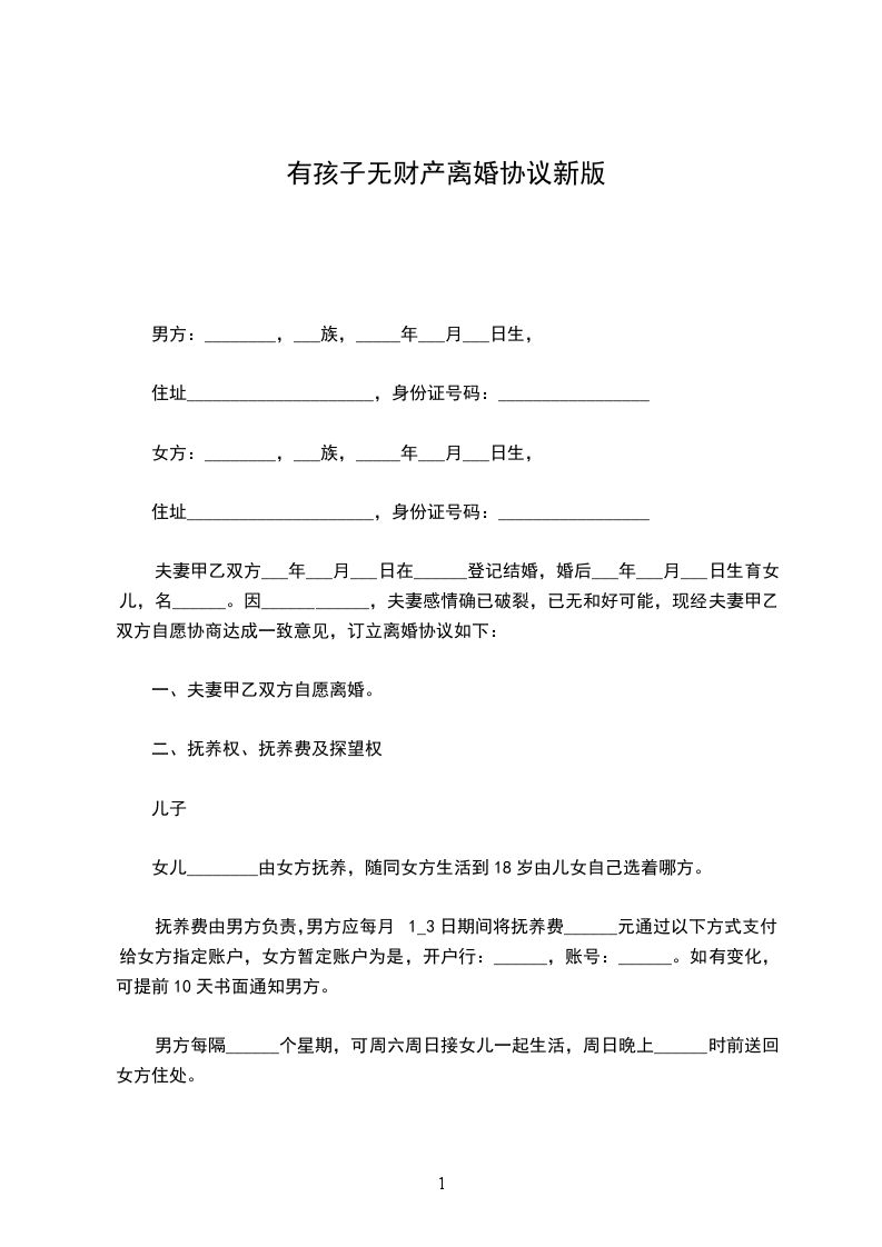 男方家庭与女方家庭于______年______月认识,于______年______月______日在____登记结婚,婚后于______年______月______日生育一女儿,名______,于______ 年______月______日又生育一女儿,______名。因_________致使夫妻感情确已破裂,已无和好可能,现经夫妻双方自愿协商达成一致意见,订立离婚协议如下: