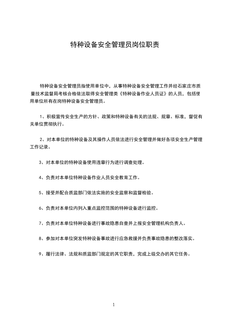 1、负责项目部工程机械设备的日常管理工作;