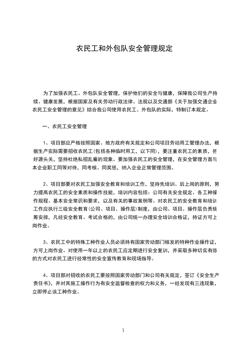 8。对劳务队、民工、外包工安全生产的宣传要做到经常化、制度化。采取多种形式宣传安全生产法规、方针、政策,宣传安全知识,营造安全生产舆论氛围,增强作业队、民工、外包工的安全意识,作到时时、处处注意安全;