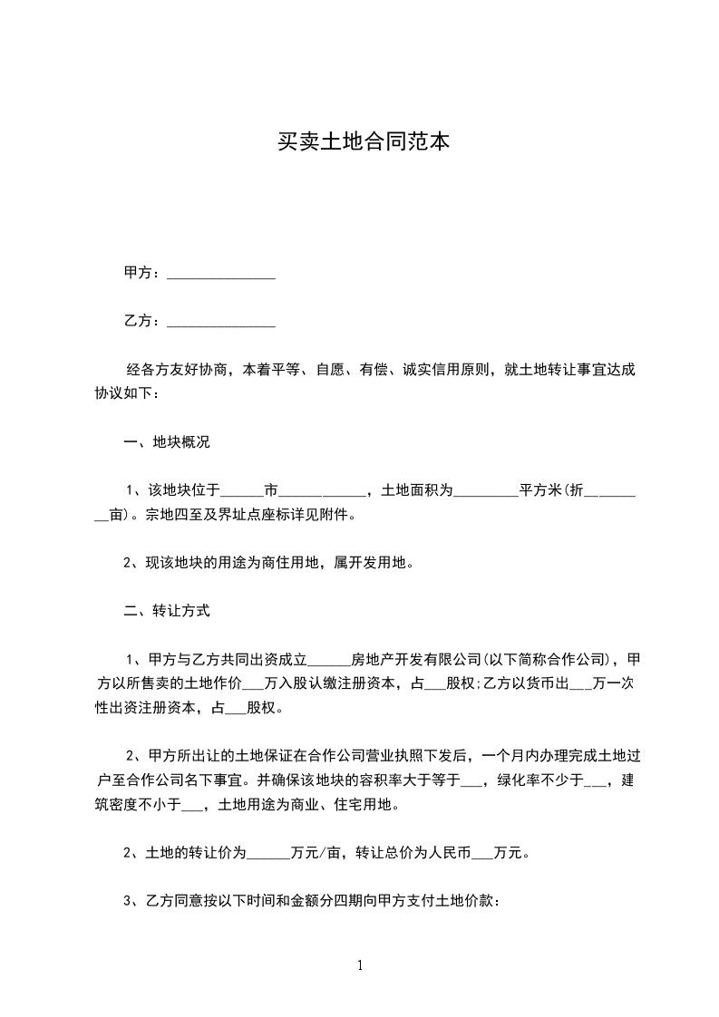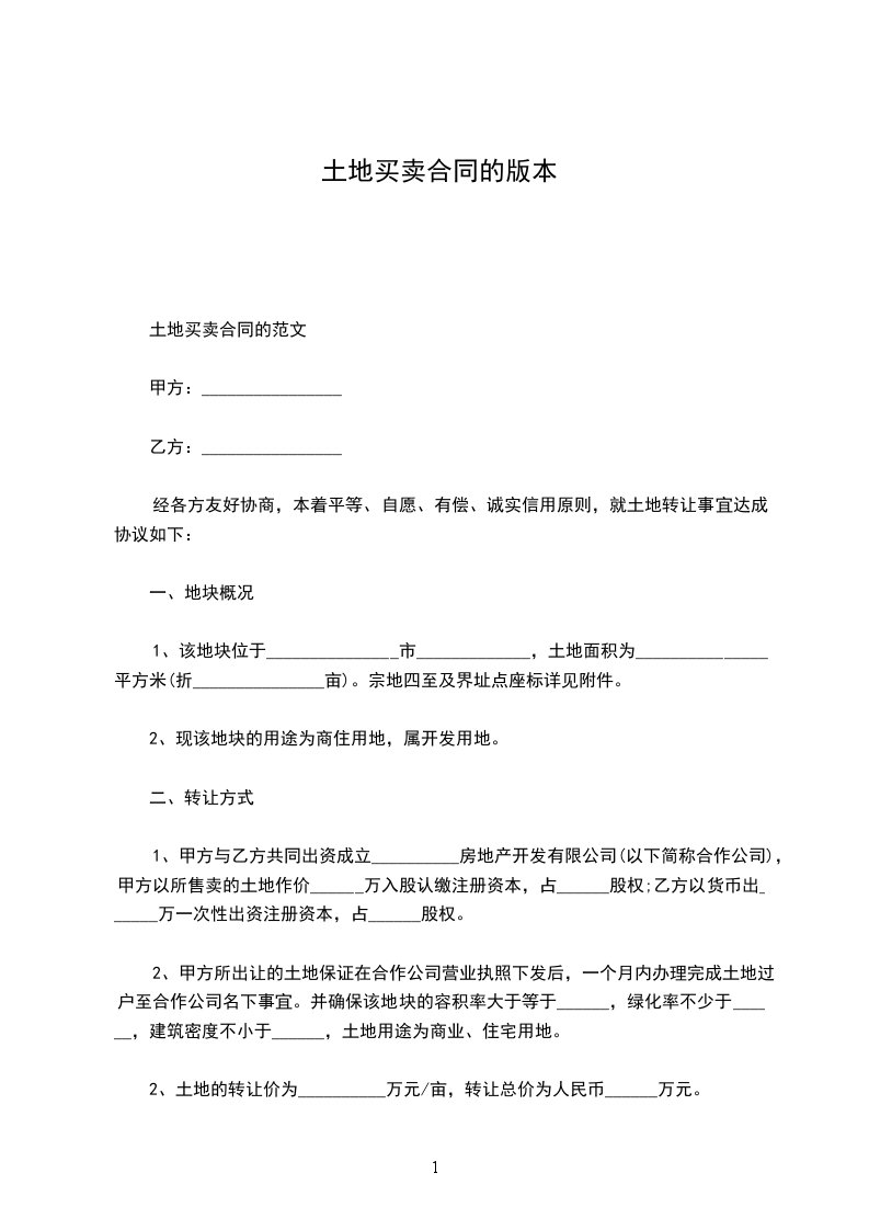 1.甲方保证通过土地挂牌形式把该地块转让给乙方,并确保该地块的容积率大于等于_________________,绿化率不少于_________________%,土地用途为商业、住宅用地。