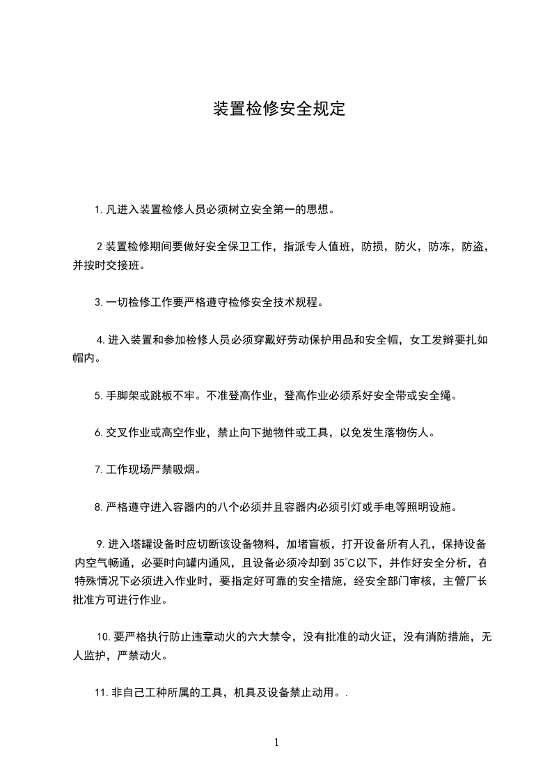 1.凡进入装置检修人员必须树立安全第一的思想。