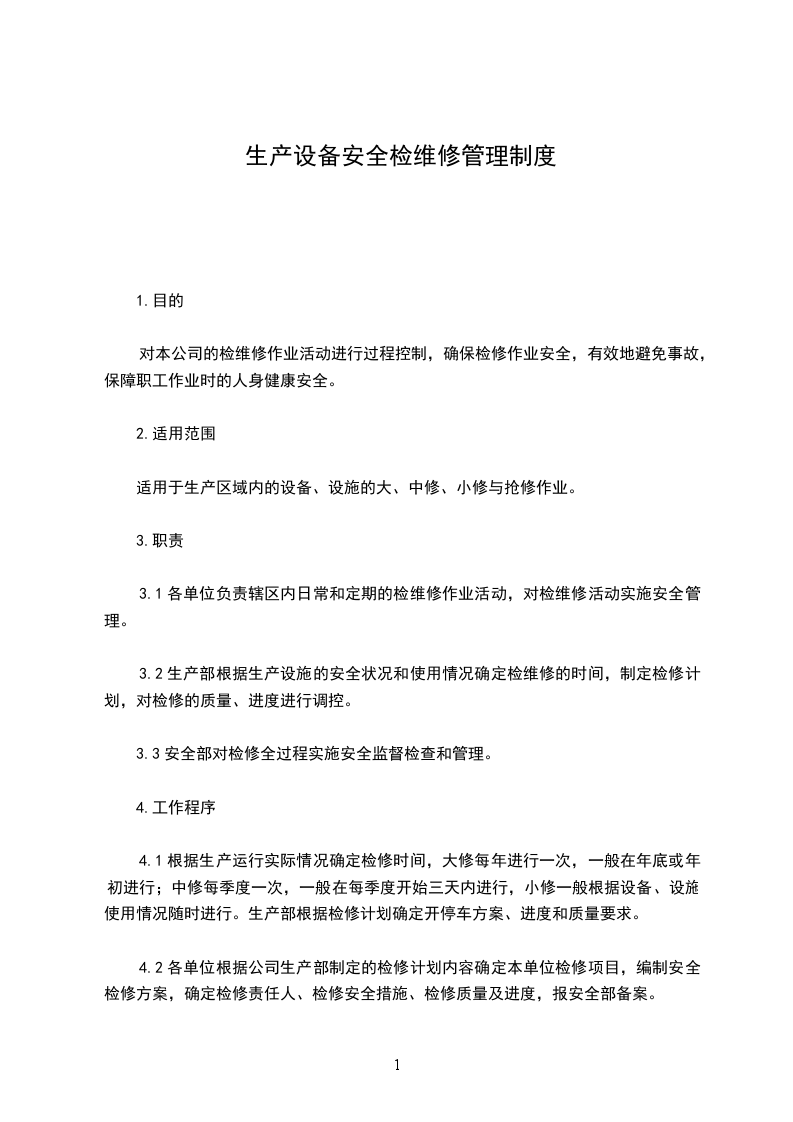 3.2生产部根据生产设施的安全状况和使用情况确定检维修的时间,制定检修计划,对检修的质量、进度进行调控。