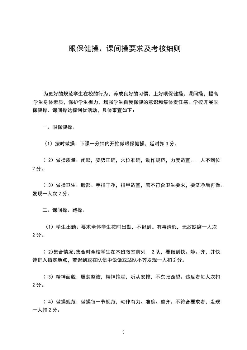 (1)按时做操:下课一分钟内开始做眼保健操,延时扣3分。
