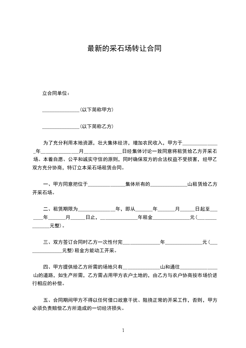 为了充分利用本地资源,壮大集体经济,增加农民收入,甲方于_______________年_______________月_______________日经集体讨论一致同意将租赁给乙方开采石场。本着自愿、公平和诚实守信的原则,同时确保双方的合法权益不受损害,经甲乙双方充分协商,特订立本采石场租赁合同。