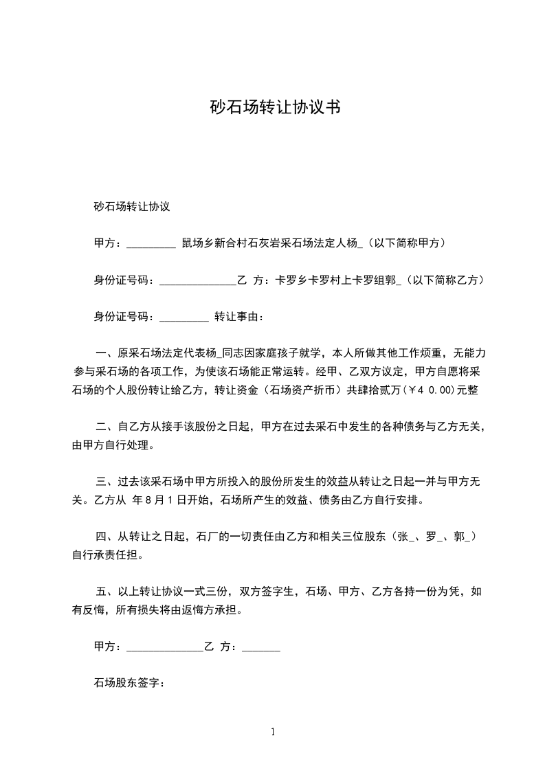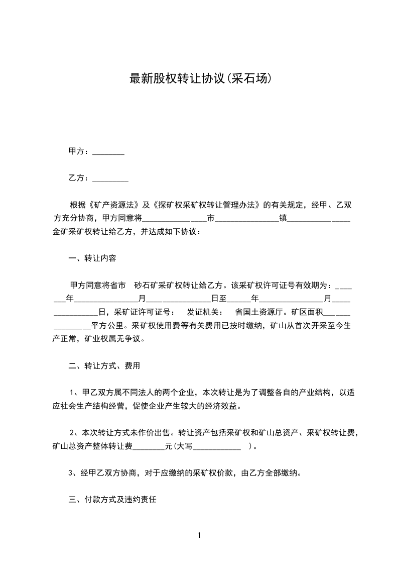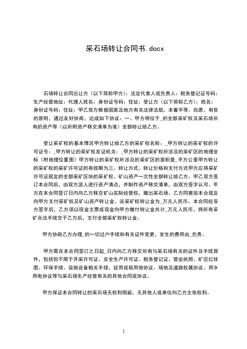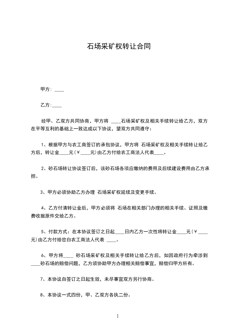 一、甲方同意把位于_______________集体所有的_______________山租赁给乙方开采石场。