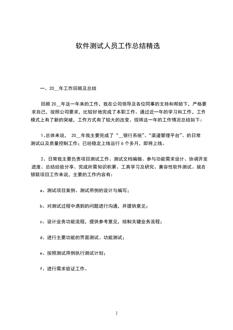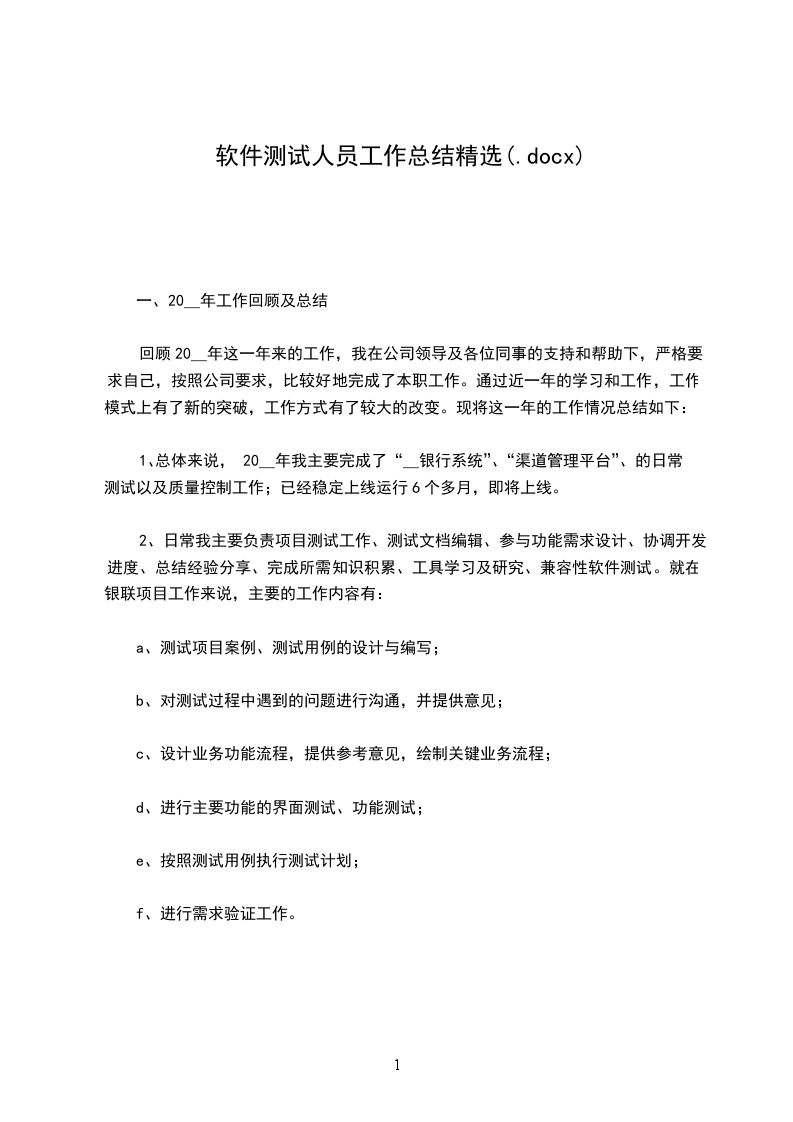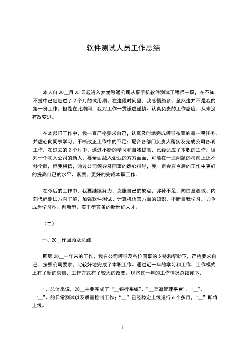1、总体来说,20__主要完成了“__银行系统”、“__渠道管理平台”、“__”、“__”、的日常测试以及质量控制工作;“__”已经稳定上线运行6个多月,“__”即将上线。