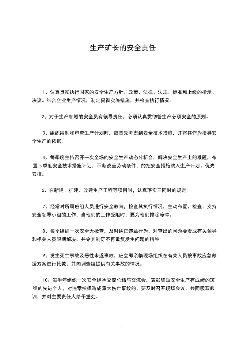1、认真贯彻执行国家的安全生产方针、政策、法律、法规、标准和上级的指示、决议。结合企业生产情况,制定贯彻实施措施,并检查执行情况。
