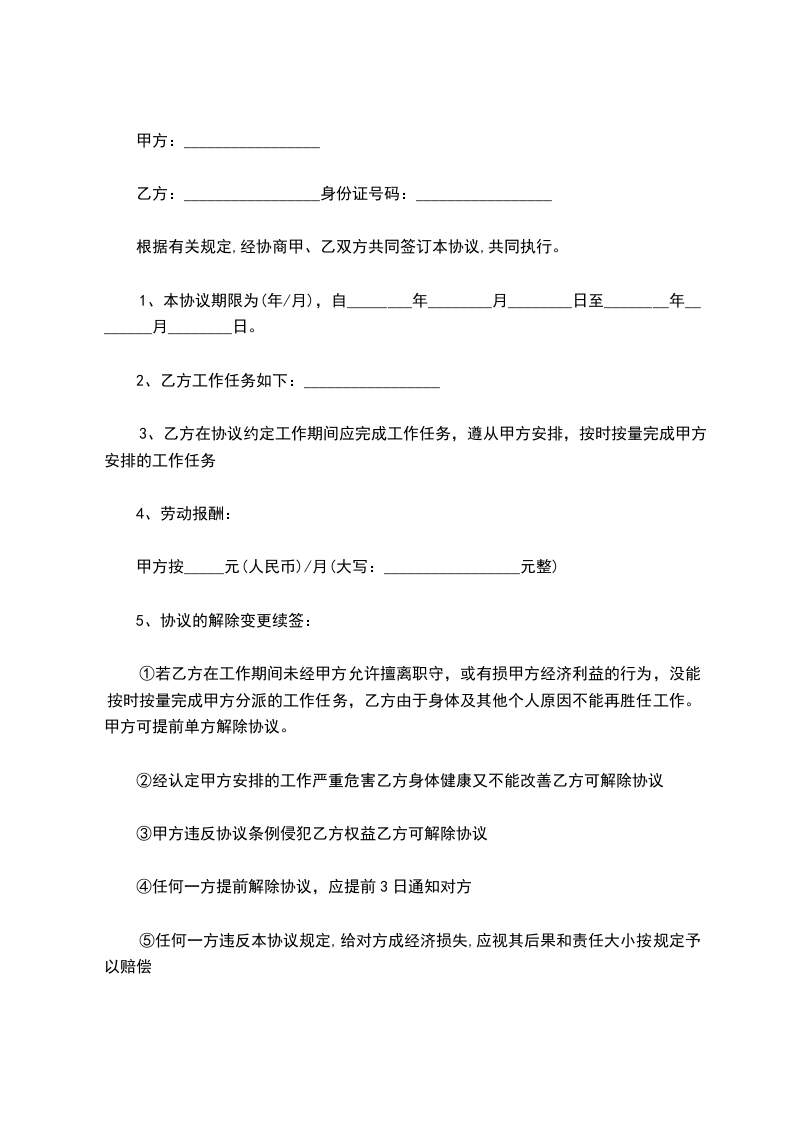 乙方(受聘人员)姓名:_________________性别:_________________民族:_________________