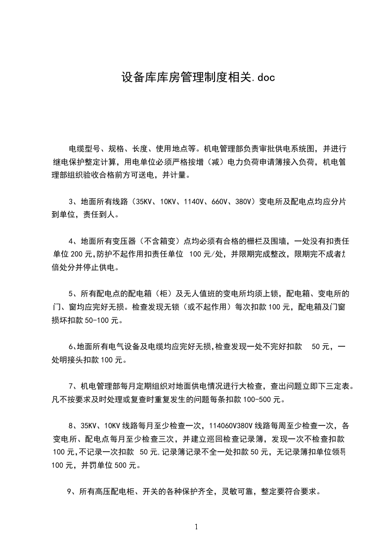 六、各单位的接到设备库的整改通知后,必须无条件地予以执行,否则设备员有权停止其设备、电缆等材料的发给及停电强制执行。
