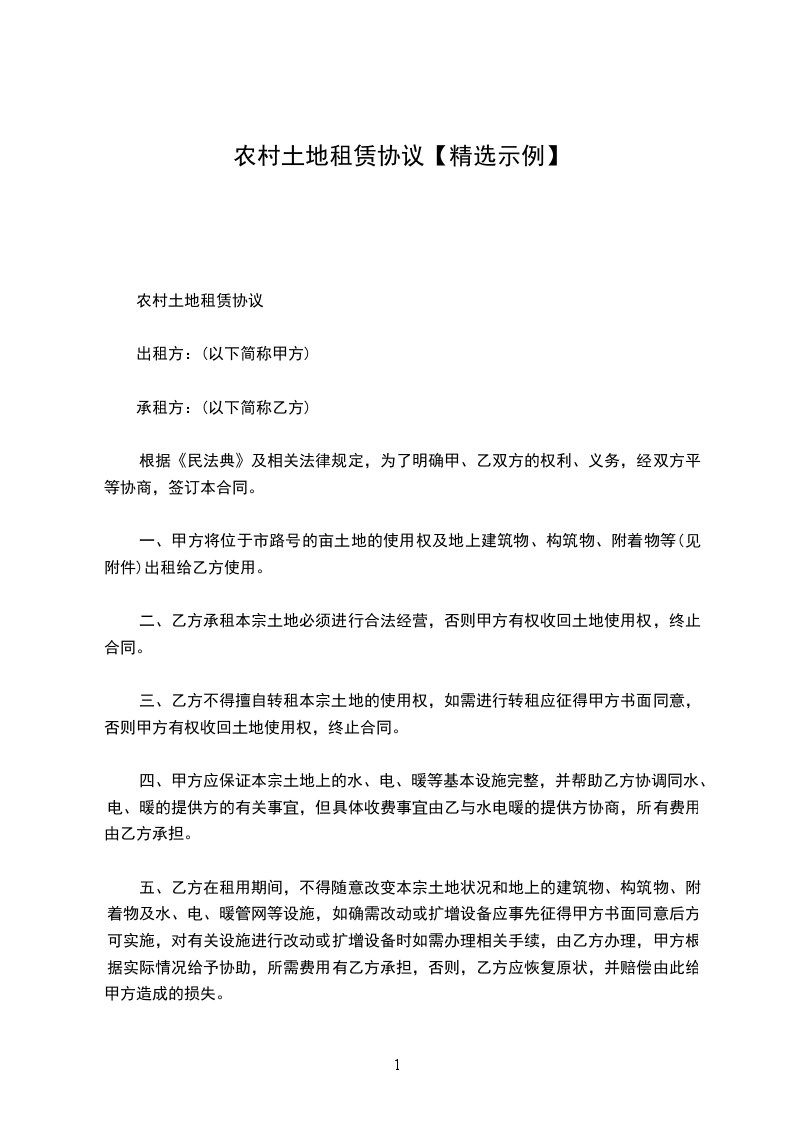 (一)在租赁期内,甲方不得随意收回土地使用权;