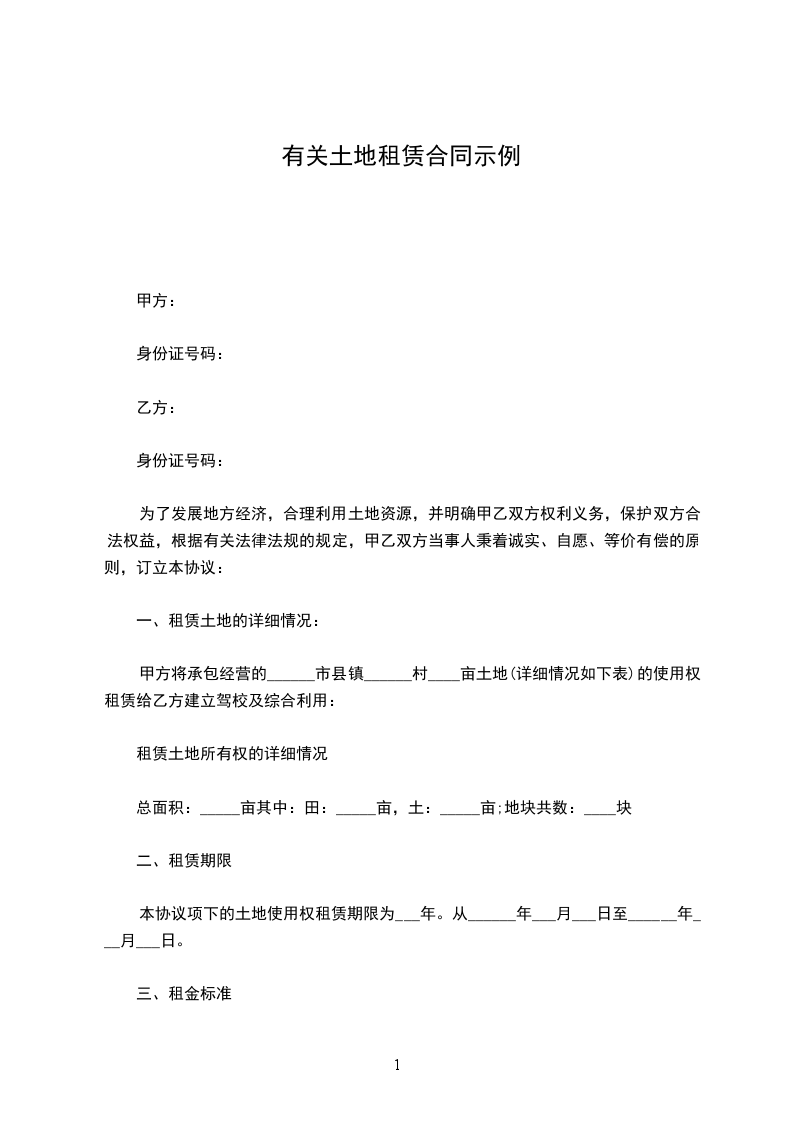 甲方将承包经营的______市县镇______村____亩土地(详细情况如下表)的使用权租赁给乙方建立驾校及综合利用: