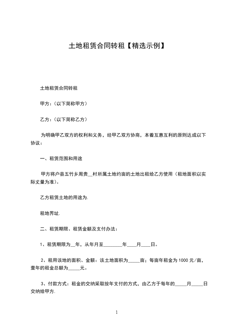 乙方按每亩_1500___元支付租赁费用,一次性付清,按期限的租金共计______元,大写____________.