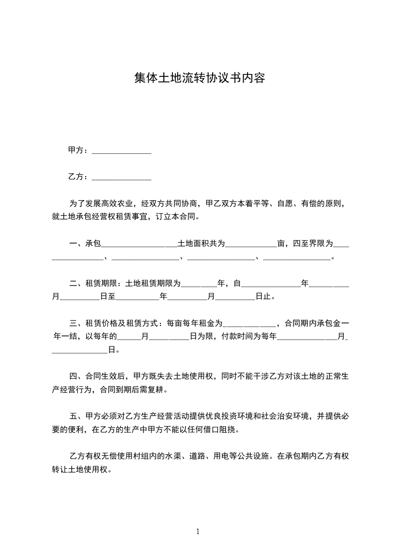 为了发展高效农业,经双方共同协商,甲乙双方本着平等、自愿、有偿的原则,就土地承包经营权租赁事宜,订立本合同。