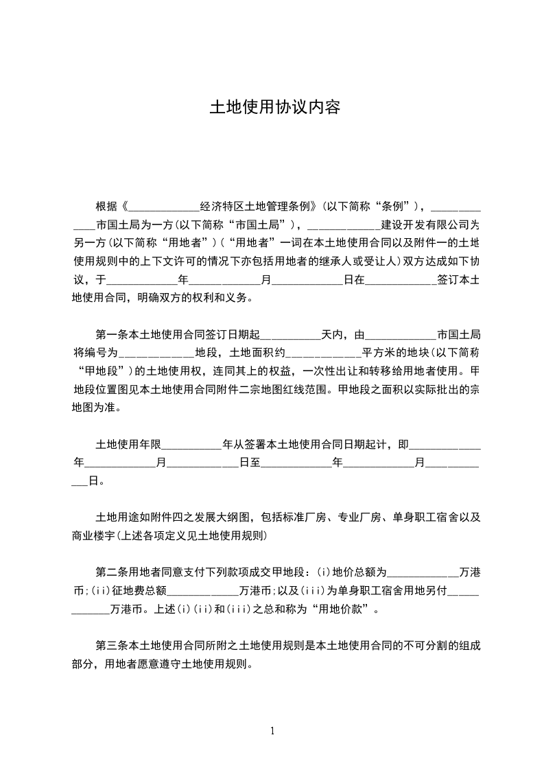 二、租赁期限:土地租赁期限为_________年,自_______________年__________月__________日至___________年__________月__________日止。