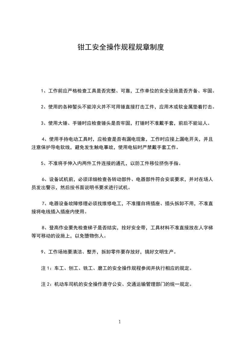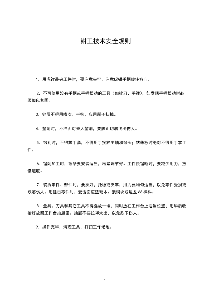 1.2.3.1在虎钳上夹工件时,不准借助辅助工具敲打钳把或在钳把上套接加力管。